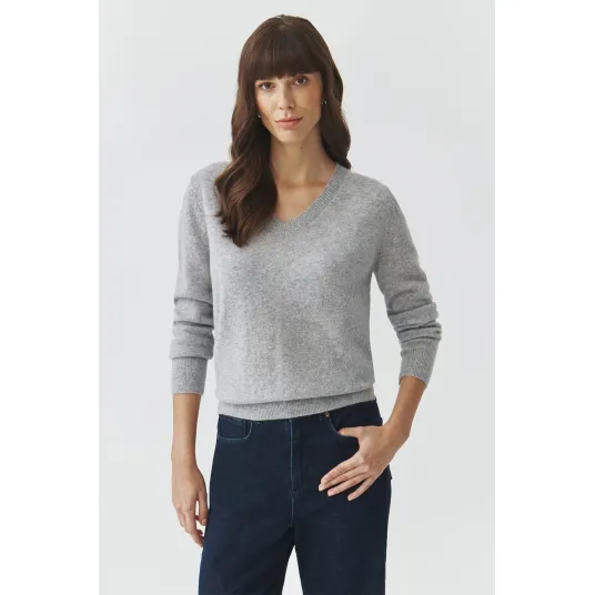 Tatuum, Pulover din casmir si decolteu in V, Gri deschis melange, 2XL