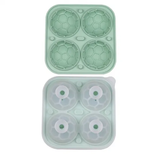 Tava pentru cuburi de gheata, Silicon, Cu capac, Mingi de fotbal, Verde/Alb