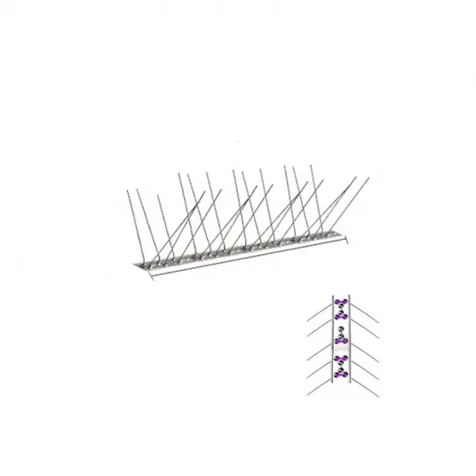 Tepi Inox, pentru pervazuri si acoperisuri, impotriva vrabiilor, porumbeilor, pisicilor, Banda 33 cm, 3 Randuri, 24 Tepi, 10 bucati per cutie