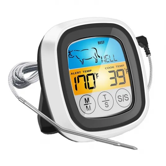 Termometru Digital De Cuptor Qeno® Pentru Bucatarie / Mancare, Citire 1 Secunda, Sonda Inox, Functie Timer Si Alarma, Magnetic, Display Touch Screen, Argintiu