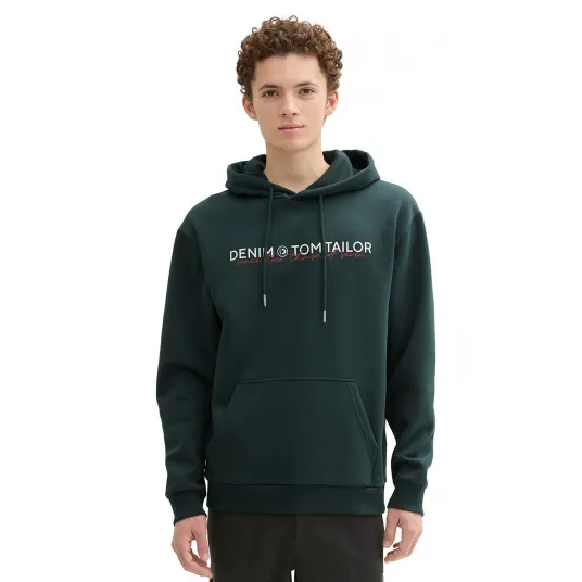 Tom Tailor, Hanorac cu imprimeu grafic, Verde inchis, M