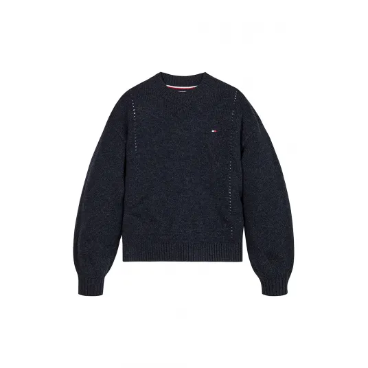 Tommy Hilfiger, Pulover de lana cu maneci cazute, Albastru ultramarin, 110 CM