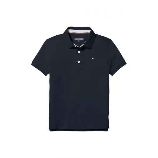 Tommy Hilfiger, Tricou polo din amestec de bumbac organic, Bleumarin inchis, 122 CM
