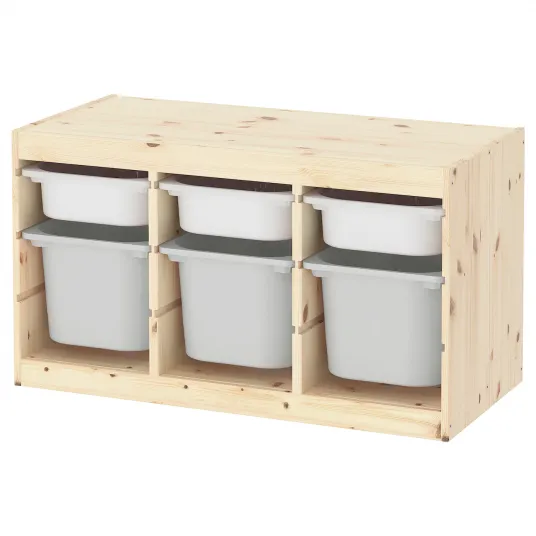 IKEA TROFAST Ansamblu depozitare+cutii, pin vopsit alb alb/gri, 93x44x52 cm