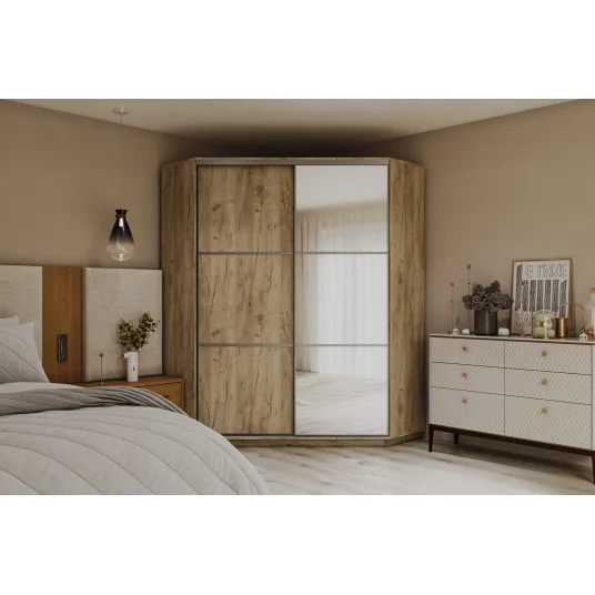 Dulap Cupe de Colt 4home, 1PAL 1 Oglinda, Stejar Craft Gri 2P-05, 110x220x110 cm