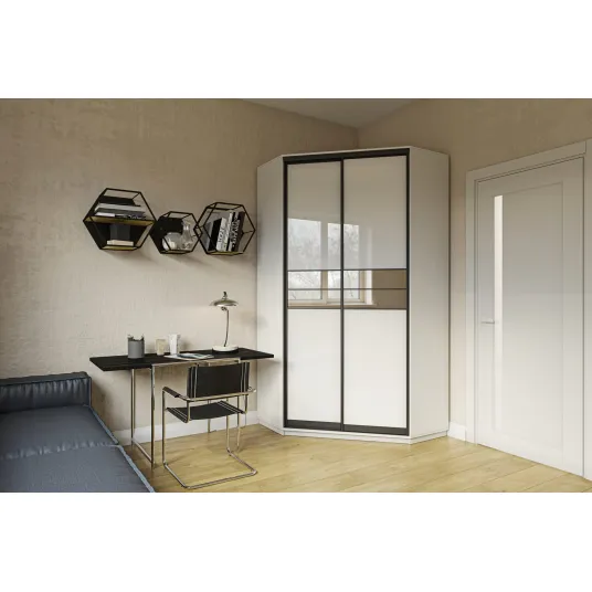 Угловой шкаф-купе 1200*1200/2200/450 корпус Нимфея альба, фасад - 2 П-15 Лакобель 9003/зеркало графит/зеркало графит/Нимфея альба