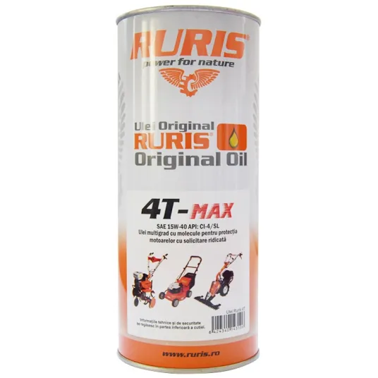 Ulei multigrad de motor Ruris 4T, 1 l, compatibil cu masini de tuns gazonul, motosape si motocultoare cu motoare in 4 timpi