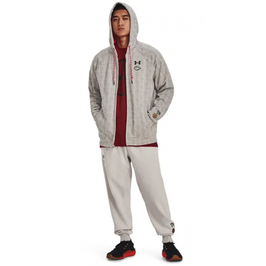 Under Armour, Hanorac cu fermoar si model, pentru antrenament, Alb, Grej, S