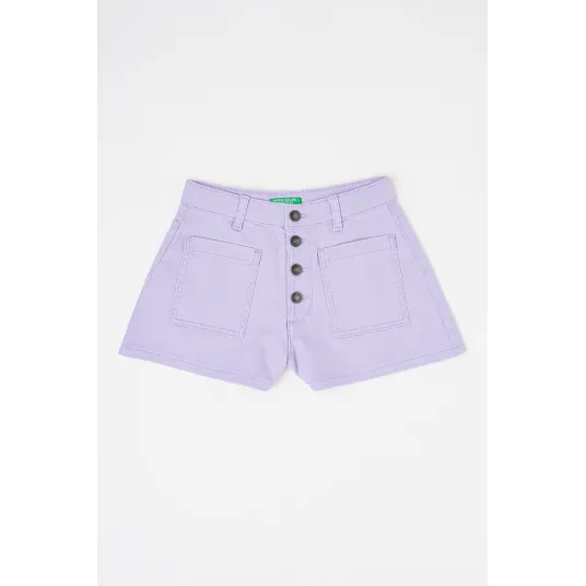 United Colors of Benetton, Pantaloni scurti de bumbac cu nasturi, Lila, 130 CM
