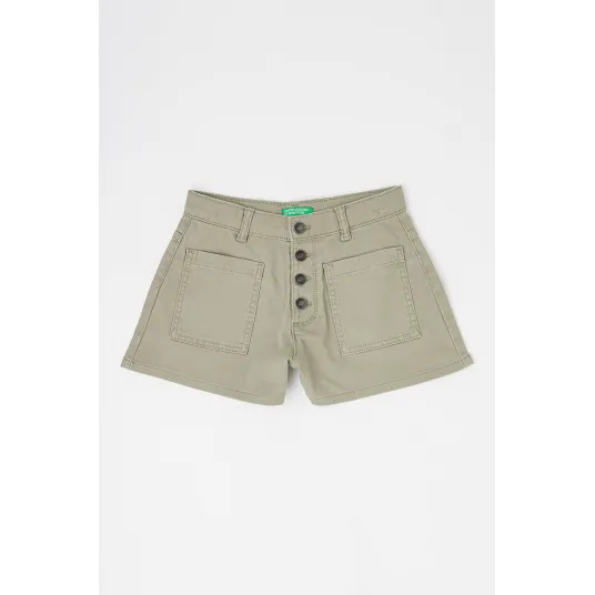 United Colors of Benetton, Pantaloni scurti de bumbac cu nasturi, Verde feriga, 130 CM