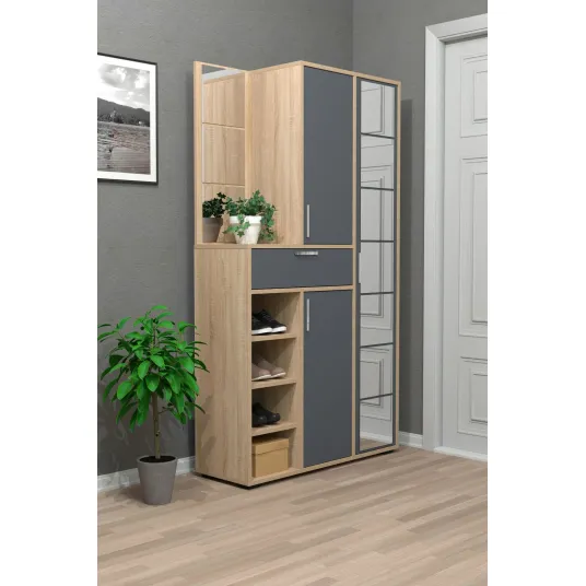 Цвет изделия : Сономо-антрацит Высота:182 см Ширина 101 см Глубина 35 см Наш продукт имеет отделение для хранения с 3 дверцами -1 ящиком и модернизирован для сегодняшнего дня с внутренней вешалкой для одежды. Наш продукт изготовлен в соответствии с европейскими стандартами качества E1, с использованием материалов, отвечающих требованиям экологии и здоровья детей. В нашем изделии используется ДСП толщиной 18 мм 1 класса с меламиновым покрытием. Кромочные ленты нашего изделия изготовлены с использованием ленты ПВХ 0,40 мм. Наш товар отправляется вам в разобранном виде в специальных картонных коробках. Наша продукция поставляется в разобранном виде с бесплатной доставкой. Монтаж осуществляется за счет покупателя. Собранные изделия возврату не подлежат. После получения изделия, если есть поврежденные детали, необходимо указать номер, написанный на детали, если есть недостающие детали, если вы определите номер недостающей детали по схеме установки и отправите ее нашему представителю, поврежденные / недостающие детали будут высланы вам бесплатно.