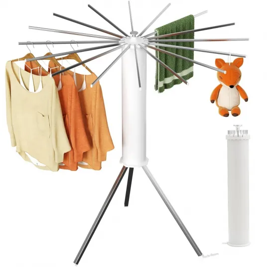 Uscator de rufe vertical, pliabil, Hggzeg, 16 tije de uscare, Rotatie de 360В°, Capacitate maxima de incarcare 40 kg, Potrivit pentru terase, balcoane, spalatorii, Plastic/otel carbon, 112x125 cm, Alb