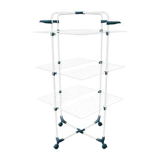 Uscator metalic vertical, cu trei nivele si spatiu de uscare de 25 de metri liniari. Pentru cei ce vor sa isi usuce rufele comfortabil si discret, in cabina de dus sau pe balcon.