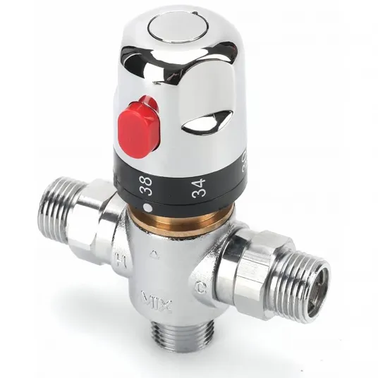 Vana Amestec, JFYU, Vana Termostatica de Amestec DN15, Protectie Antioparire, Corp din Alama, Temperatura Constanta 35-45°C, Control Temperatura, Pentru Instalatii Sanitare, Argintiu