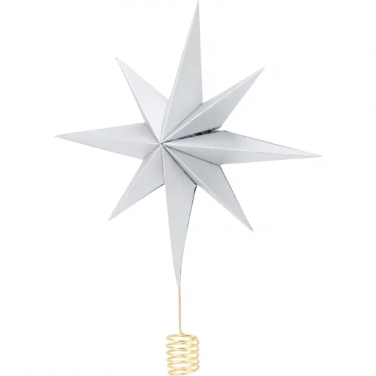 Varf decorativ pentru brad Star, 30x23x9 cm, hartie/metal, finisaj cu sclipici, argintiu