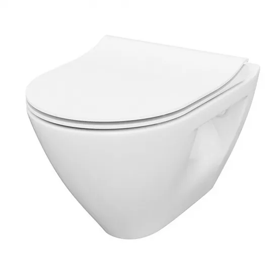 Vas de toaleta suspendat Cersanit S701-454-ECO, montare pe perete, tehnologie CleanOn, capac slim cu inchidere lenta, antibacterian, Alb