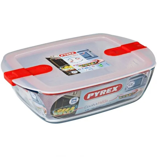Vas rectangular Pyrex, cu capac, sticla termorezistenta, 23 x 15 x 6 cm, 1.1 L