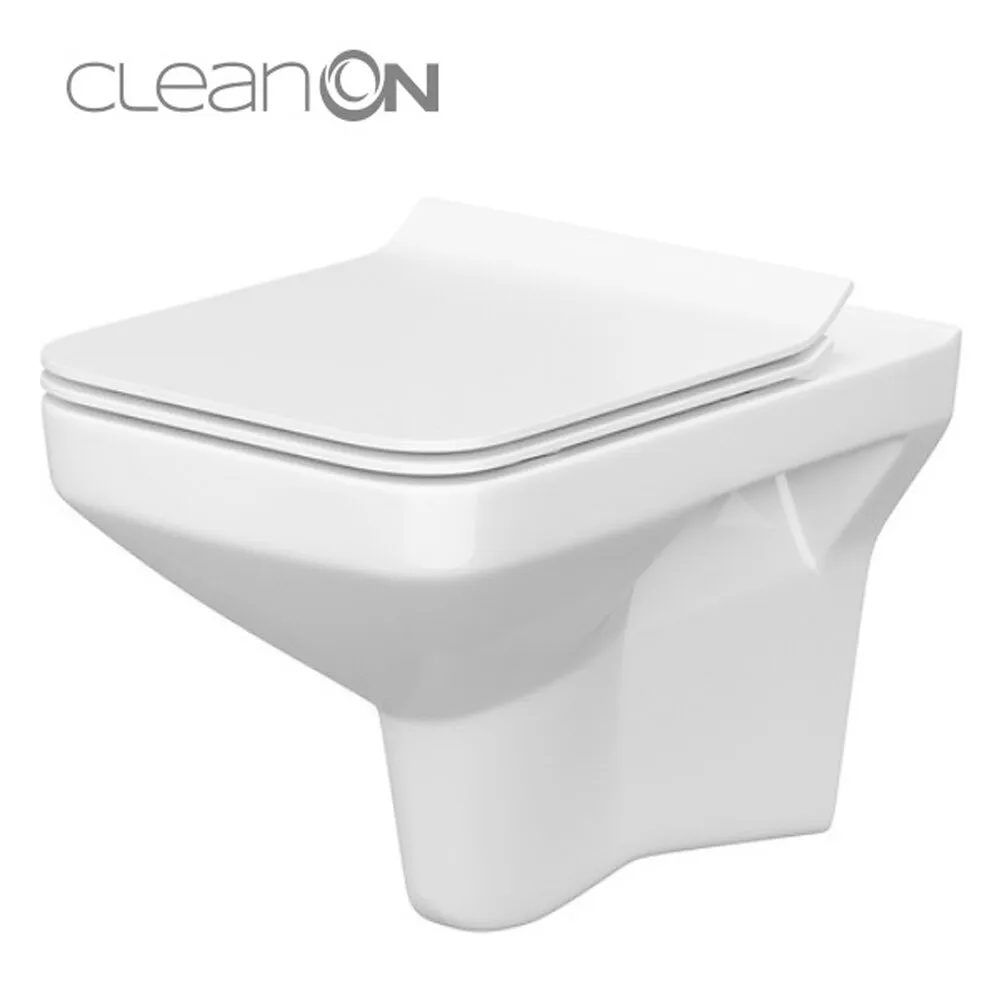 Vas toaleta, Cersanit, K701-102-ECO, ceramica, montata pe perete, capac wc, Alb