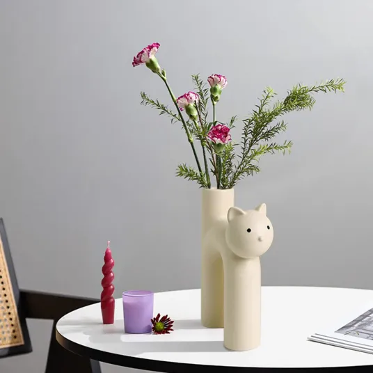 Vaza de ceramica in forma de pisica, decorativa, alba mata, 1 bucata, pentru flori uscate sau artificialeVaza de ceramica in forma de pisica, decorativa, alba mata, 1 bucata, pentru flori uscate sau artificiale223323364223323364