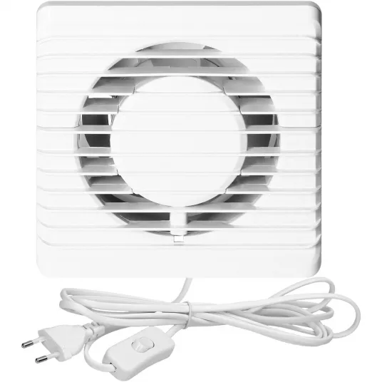 Ventilator baie Orno OR-WL-3200/100/PS, 8 W, 93 m³/h, 2400 rpm, 100 mm, montare in perete, cablu cu intrerupator, Alb
