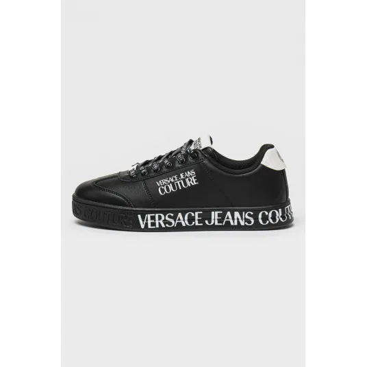 Versace Jeans Couture, Pantofi sport de piele cu logo, Negru, Alb optic, 43