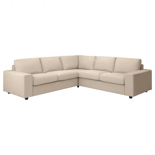 - IKEA VIMLE Canapea colt 4 locuri Cu brate late/Hallarp bej este o canapea eleganta si confortabila, perfecta pentru orice sufragerie.