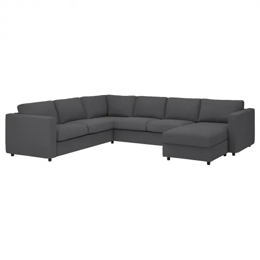 Canapea IKEA VIMLE este conceputa pentru a va oferi tot ce este mai bun din ambele lumi – confort maxim si stil elegant. Canapeaua vine intr-un finisaj gri Hallarp care adauga o nota de eleganta si rafinament oricarei incaperi. Designul sau generos cu 5 locuri si sezlong il face perfect pentru relaxare sau socializare cu prietenii si familia.