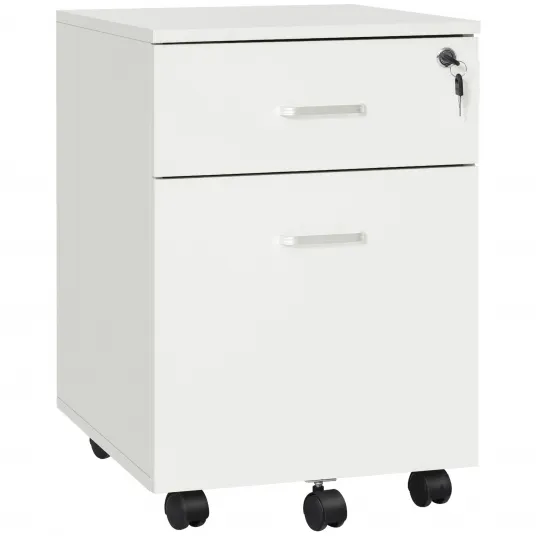 Acest fiset cu sertare pentru birou Vinsetto cu incuietoare va poate ajuta sa maximizati utilizarea spatiului de lucru. Cele 2 sertare mari ofera spatiu amplu pentru a va pastra documentele si rechizitele de birou. 2 sertare pot fi blocate impreuna pentru a va proteja confidentialitatea si documentele importante. Cele 5 roti cu rulare lina cu 2 frane il fac usor de mutat si stabil. Cu fisetul nostru cu 2 sertare nu veti mai avea probleme cu organizarea si gasirea documentelor importante.