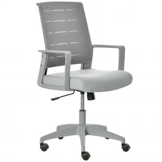 Vinsetto scaun de birou ergonomic, 59x61x95.5-105cm, griDaca lucrati ore intregi in fata calculatorului atunci aveti nevoie de cat mai mult confort si un scaun care sa va amelioreze durerile de spate. Va recomandam Vinsetto scaun de birou ergonomic, 59x61x95.5-105 cm, gri cu spatar ergonomic. Are o tapiterie din tesatura din plasa pentru circulatia aerului, iar captuseala sezutului este din cauciuc spumant pentru un confort cat mai mare. Designul curbat al spatarului sustine foarte bine spatele si postura corecta pentru a preveni durerile de spate. Vinsetto scaun de birou ergonomic, 59x61x95.5-105cm, gri cu inaltime ajustabila in functie de nevoi si preferinte. Dotat cu maneta pe gaz pentru a regla inaltimea. Scaunul este pivotant la 360°, detine roti pentru a va putea misca in voie. Designul de tip balansoar va ajuta sa va relaxati in momentele de pauza. Poate sustine o greutate maxima de pana la 136 de kg. Necesita asamblare. Scaunul este dotat si cu o cotiera.222849968222849968