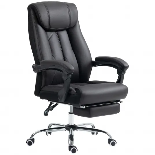 Vinsetto Scaun directorial, Scaun rabatabil de birou cu suport pentru picioare, roti pivotante, inaltime reglabila, Negru