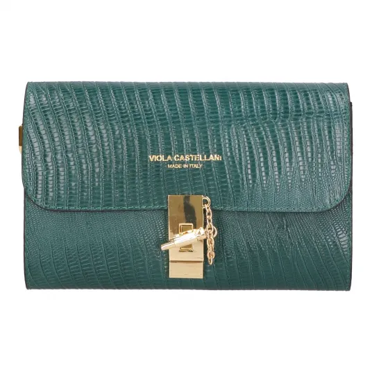 Viola Castellani, Geanta-plic de piele cu bareta de lant, Verde inchis