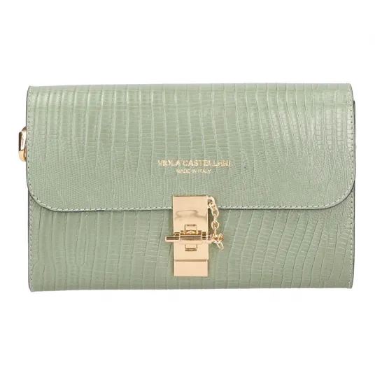 Viola Castellani, Geanta-plic de piele cu bareta de lant, Verde pal