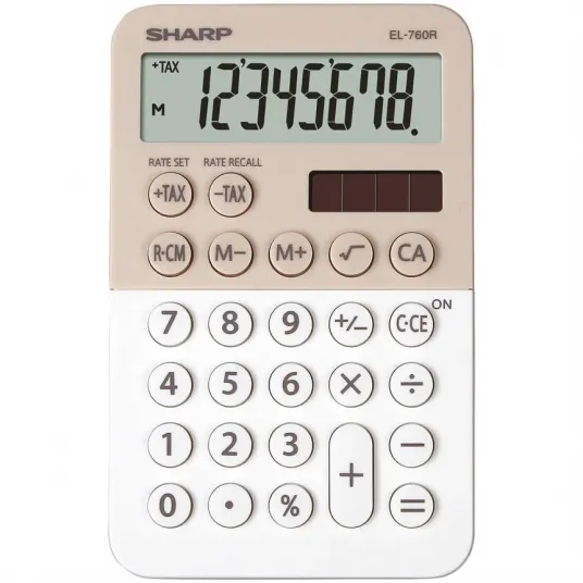 Calculator de birou Sharp, 8 digits, 120 x 76 x 23 mm, dual power, bej/alb