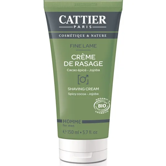Crema pentru barbierit Fine Lame de la Cattier contine agenti aniinflamatorii, calmanti si protectori (aloe vera, bisabolol, cacao condimentata) si un agent emiloent natural care inmoaie firele de par si permite lamei sa alunece cu usurinta. Pielea ramane curata, neteda, iar barbieritul este impecabil.